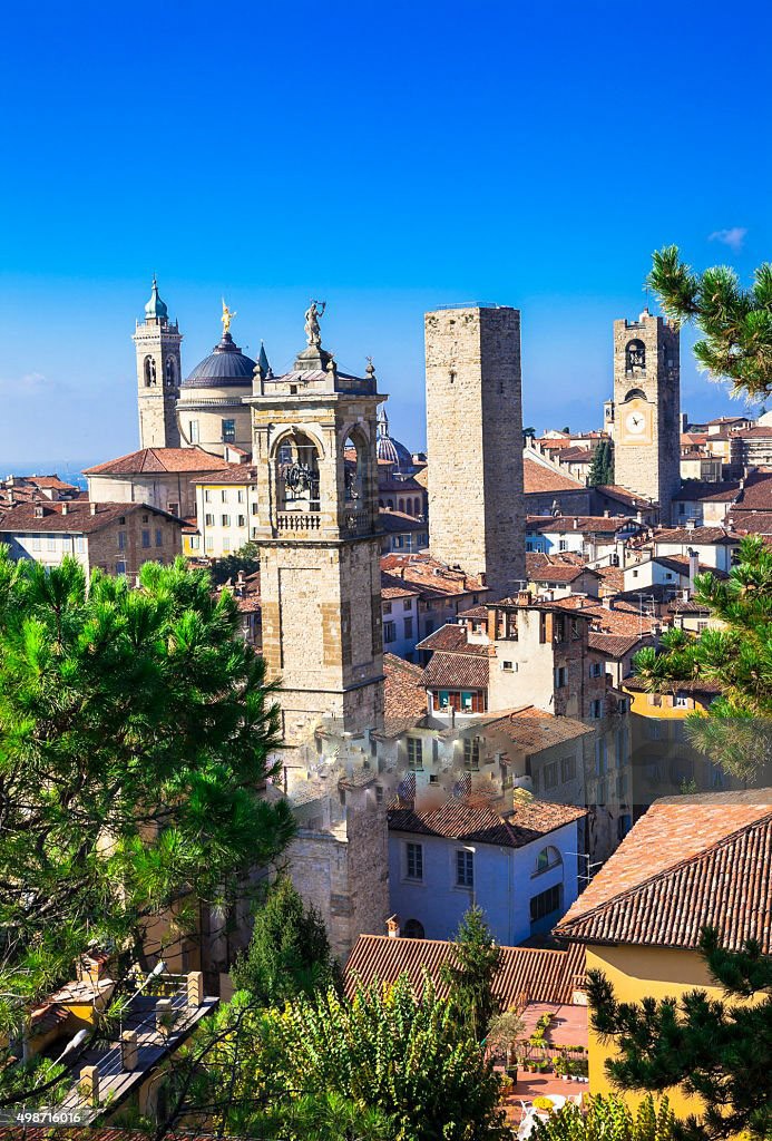 La plaza más hermosa de Europa está en el corazón de la Ciudad Alta, «Piazza Vecchia «.Si te sientas en uno de los restaurantes y cafés de la plaza para un desayuno, un aperitivo o bien una cena romántica, estarás rodeado por la belleza. Puedes observar el Palazzo della Raggione.